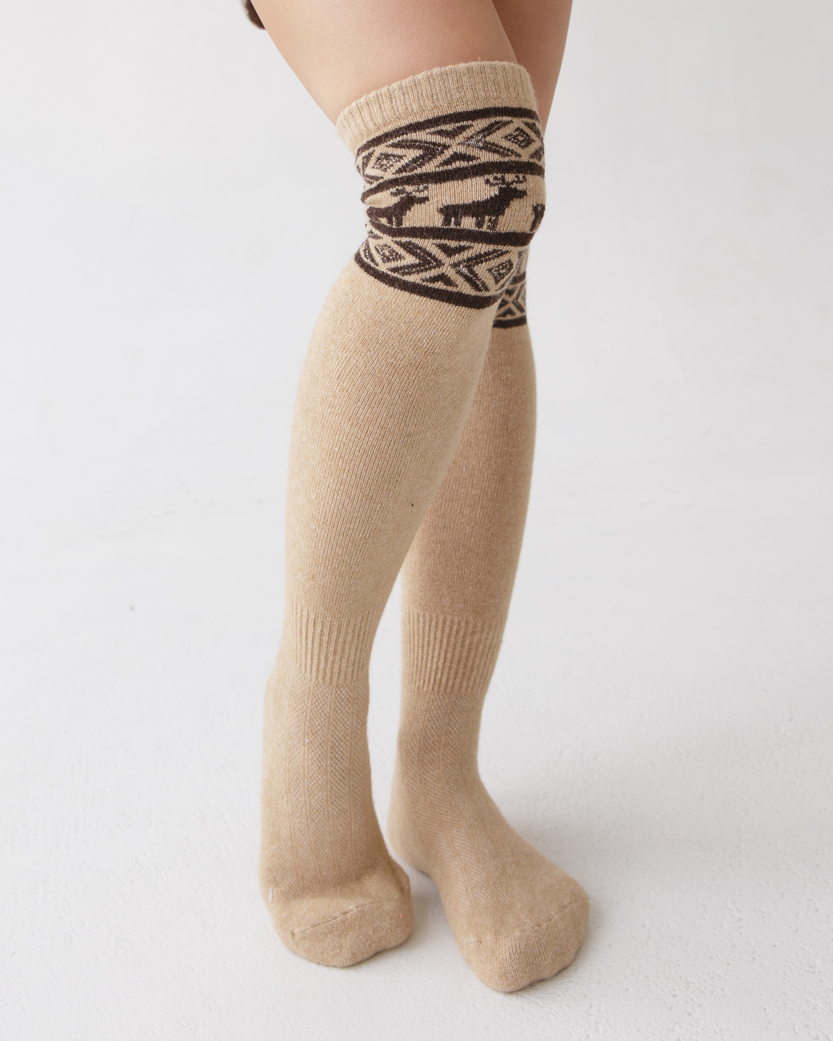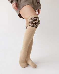 Теплые гольфы из монгольской шерсти бежевые с рисунком