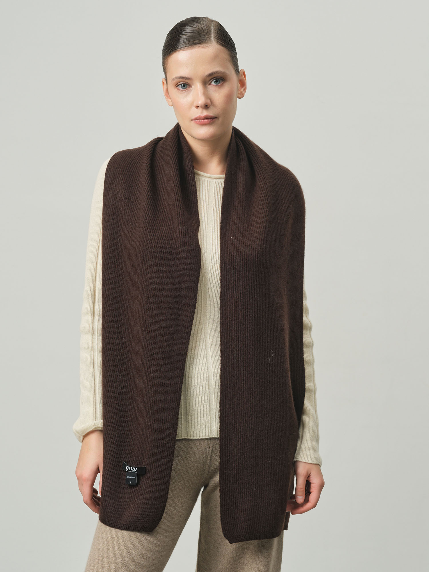 Мой первый кашемировый шарф, и я влюбилась! Шоколадный цвет универсальный, ношу с бежевым пальто – смотрится шикарно. |