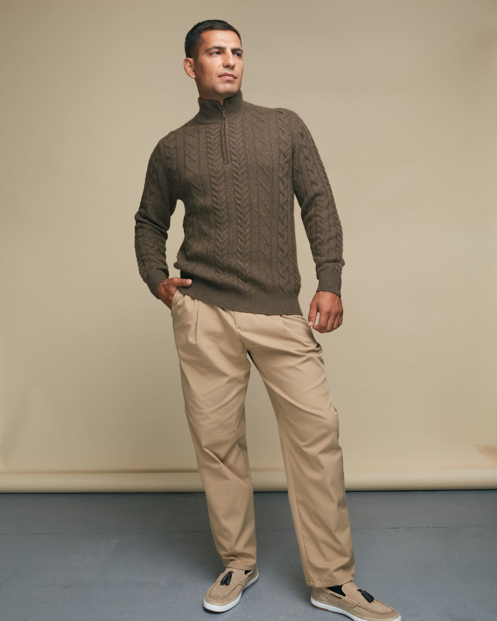 Мужской джемпер из пуха яка — тёплая и стильная модель с выразительной фактурой, идеально подходящая для холодного времени года и повседневного гардероба.