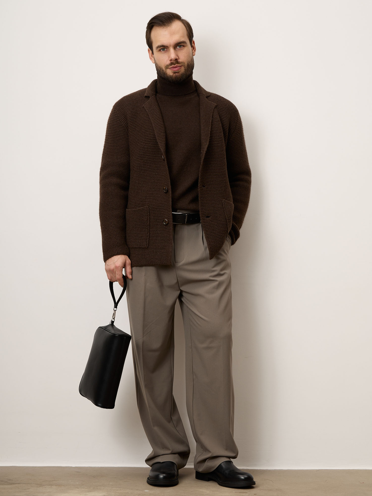 Кардиган — это тёплая, универсальная и статусная вещь, которая сочетает в себе удобство трикотажа и элегантность пиджачного силуэта. Натуральное волокно, износостойкость и благородный цвет делают его вложением, которое служит годами.