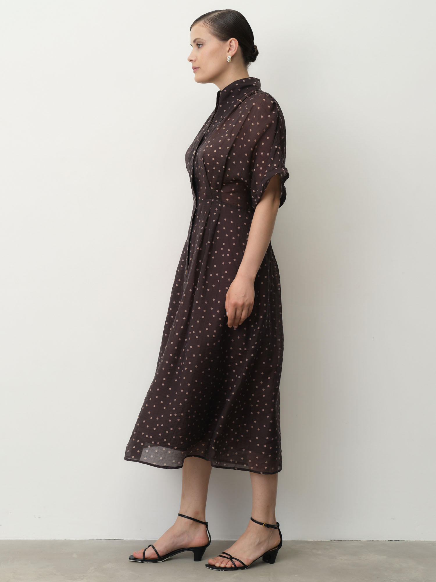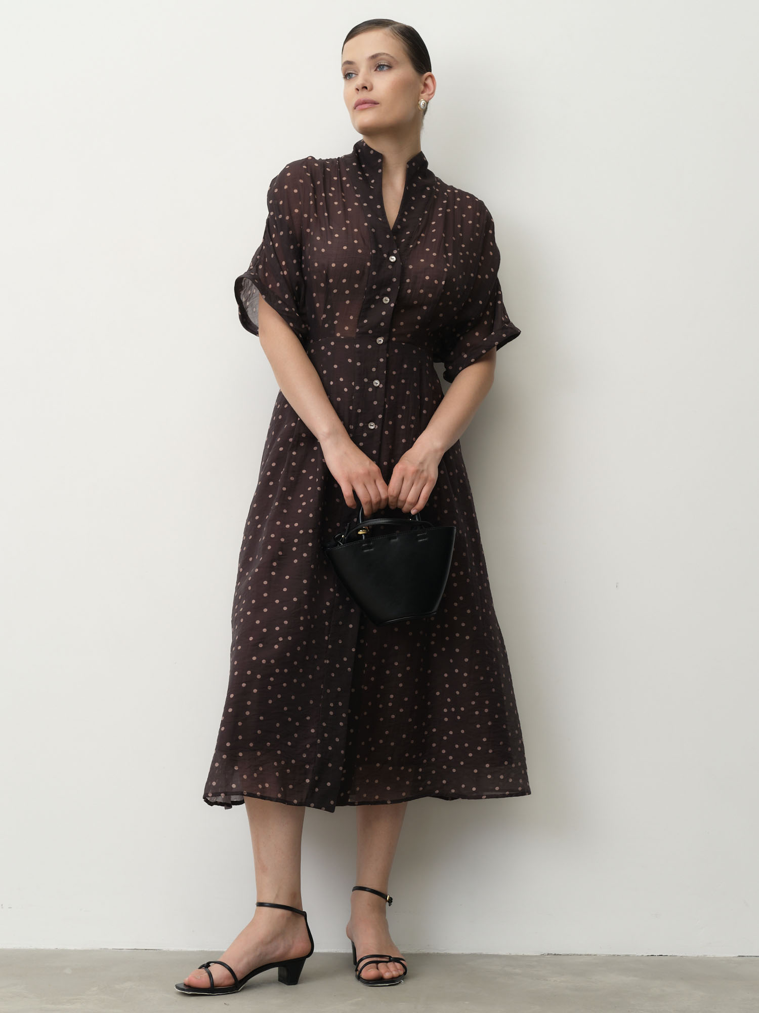 Платье из тенселя чёрного цвета в горошек — это идеальный баланс между классикой и современностью. Оно подчёркивает фигуру, не перегружает образ, дышит и мягко струится при движении. Безупречный выбор на каждый день и на особый случай.