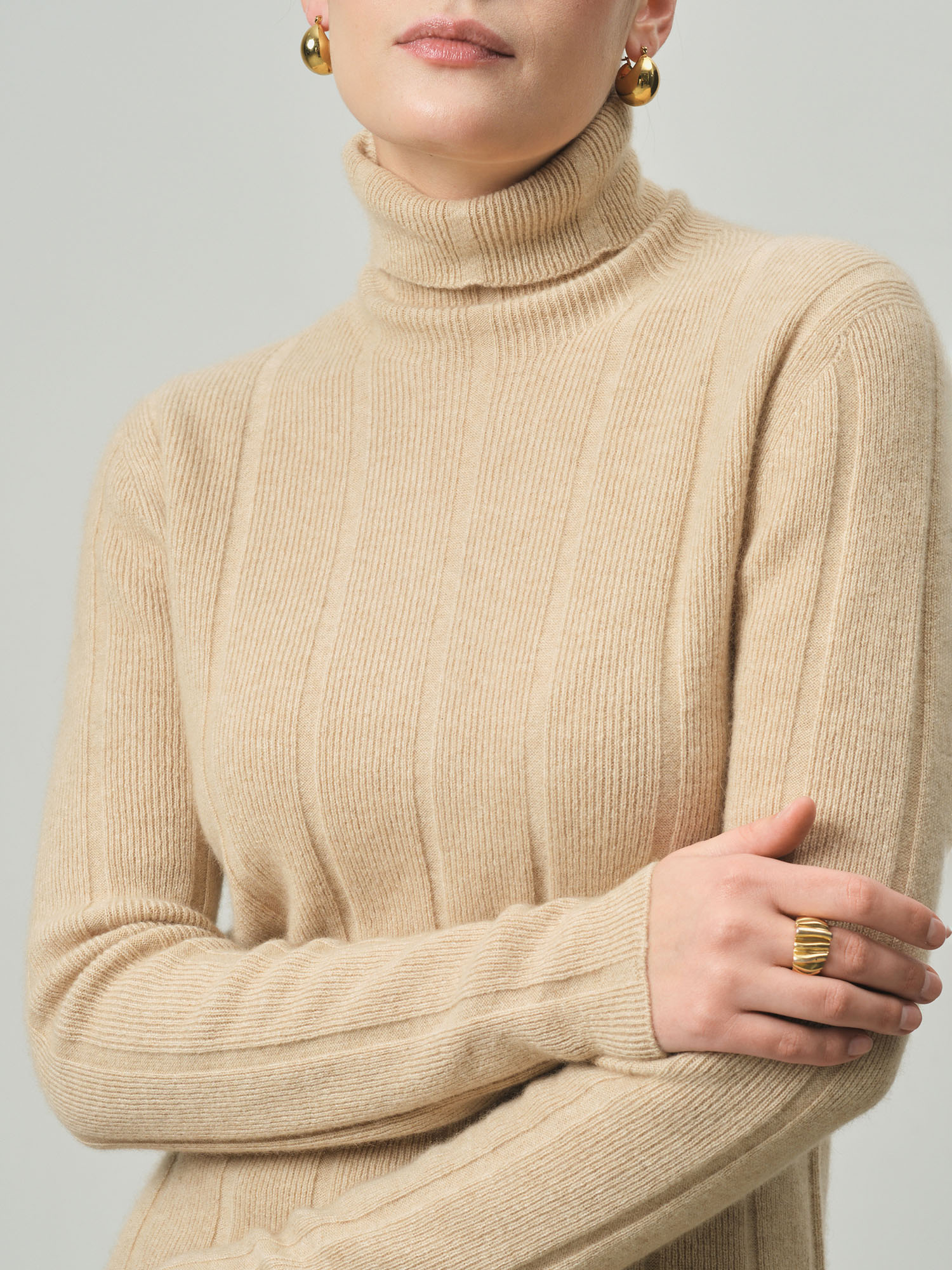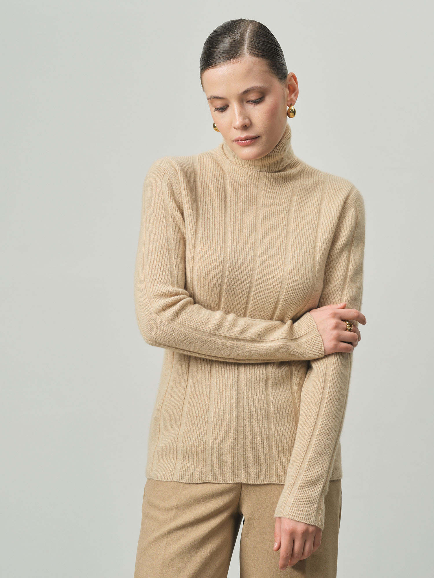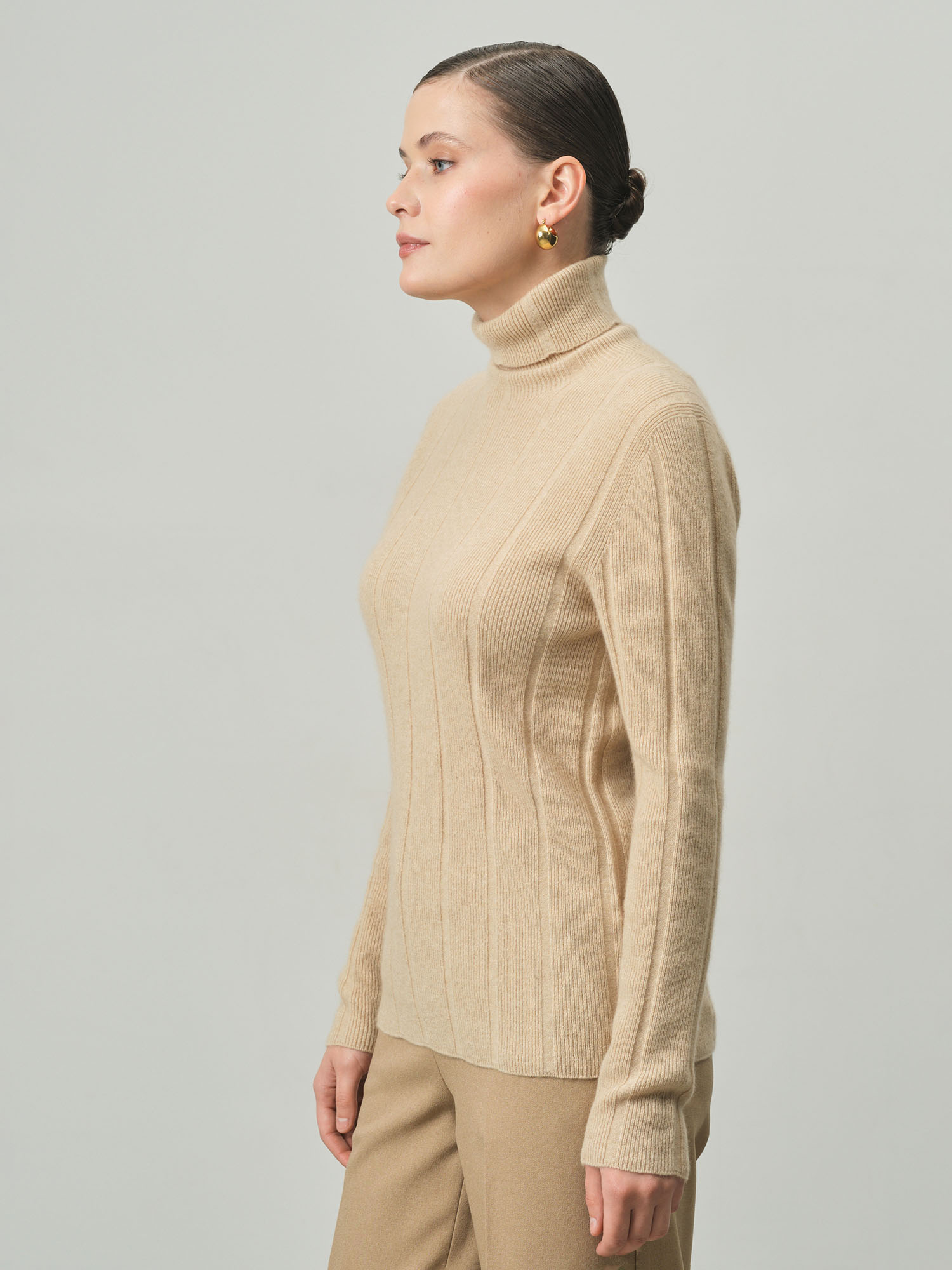 Водолазка женская из кашемира бежевая — образец утонченной женственности и вневременной элегантности. Созданная из 100% монгольского кашемира, она сочетает в себе невероятную мягкость и практичность. Удлиненная горловина, характерная для водолазки, обеспечивает дополнительное тепло и создает изящную линию шеи, одновременно защищая от прохладного ветра.