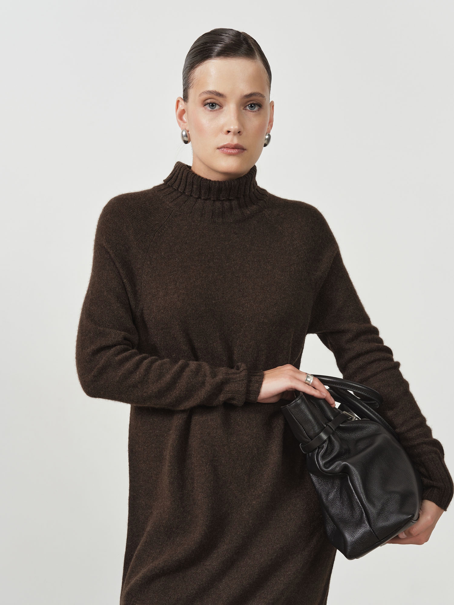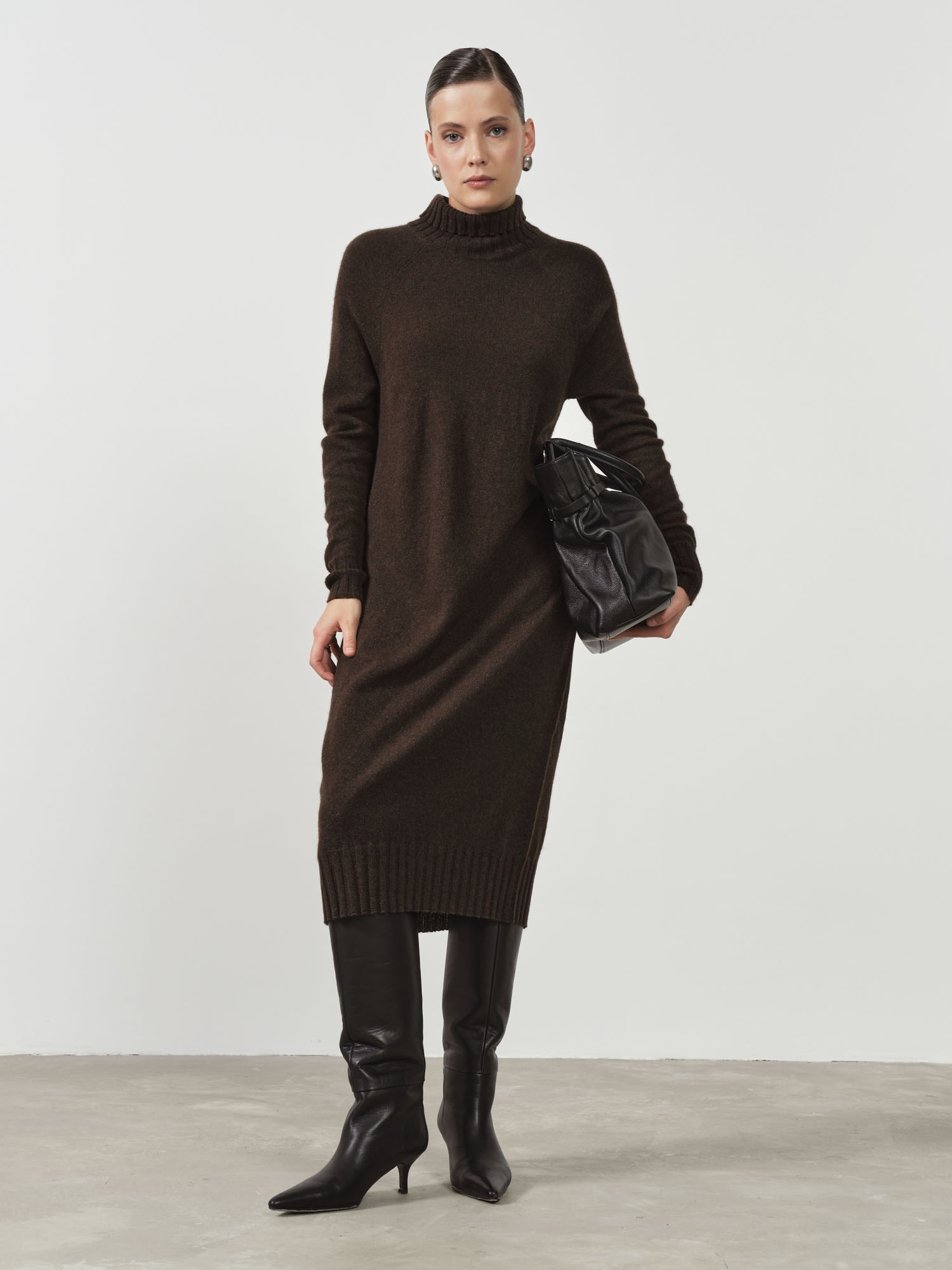 Свободный крой и длина миди позволяют легко комбинировать платье с любыми элементами гардероба — от сапог до ботинок. Этот оттенок темного шоколада подчеркнет Вашу индивидуальность и легко впишется в любой повседневный или деловой образ.