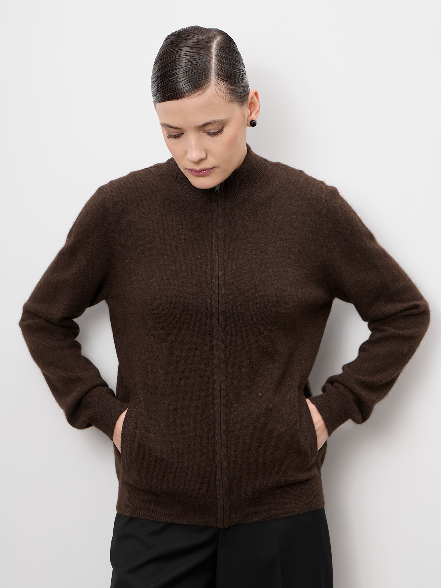 Кардиган из пуха яка женский 08482 темно-коричневый