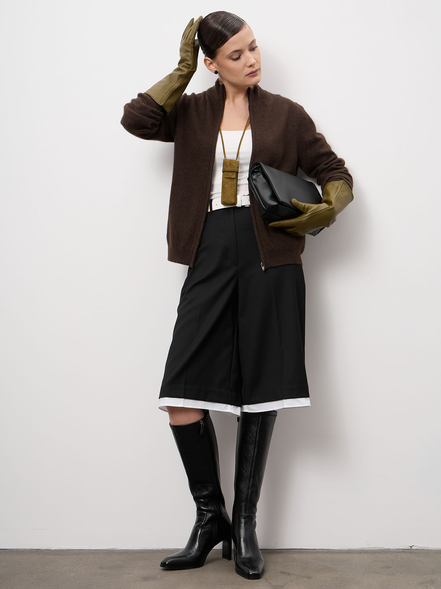 Минималистичное исполнение, аккуратная обработка краёв, универсальная длина. Глубокий тёмно-коричневый цвет подчёркивает текстуру пуха яка и легко комбинируется с базовыми оттенками гардероба.
